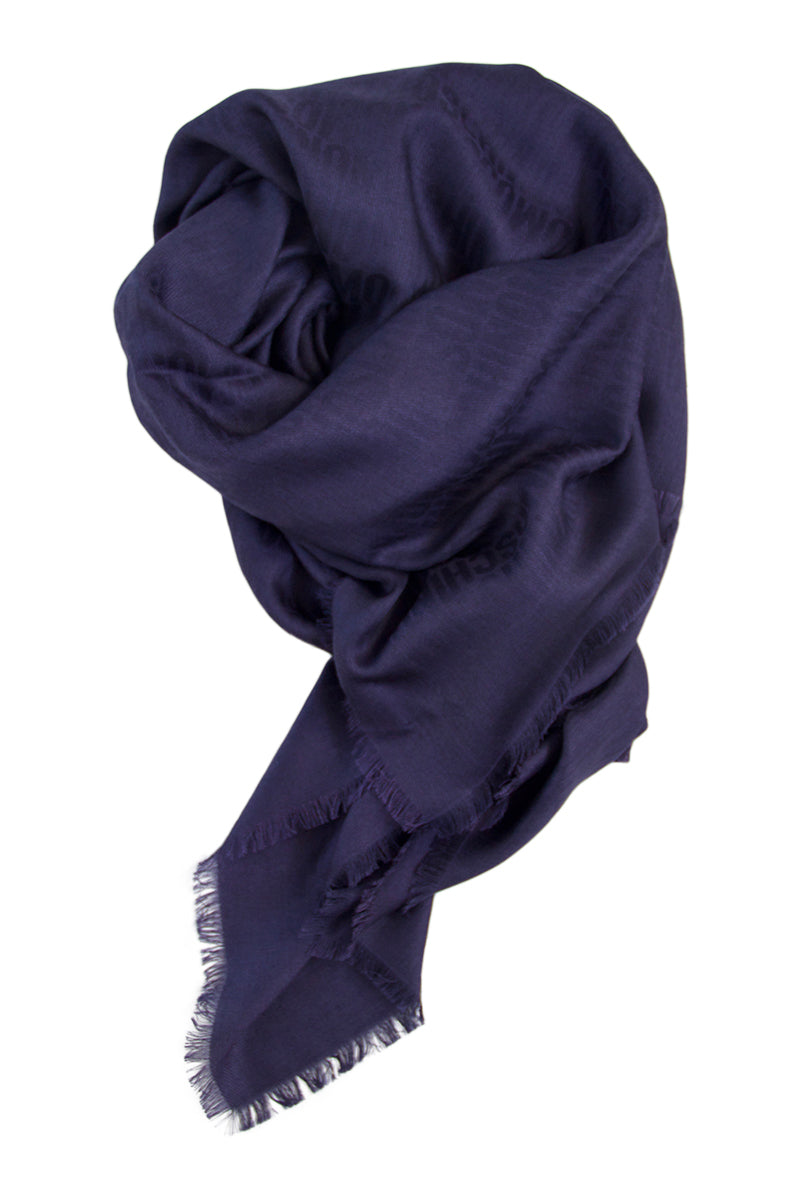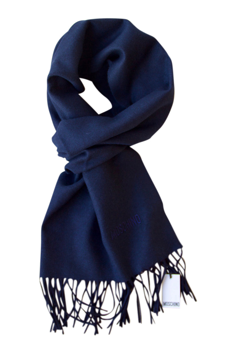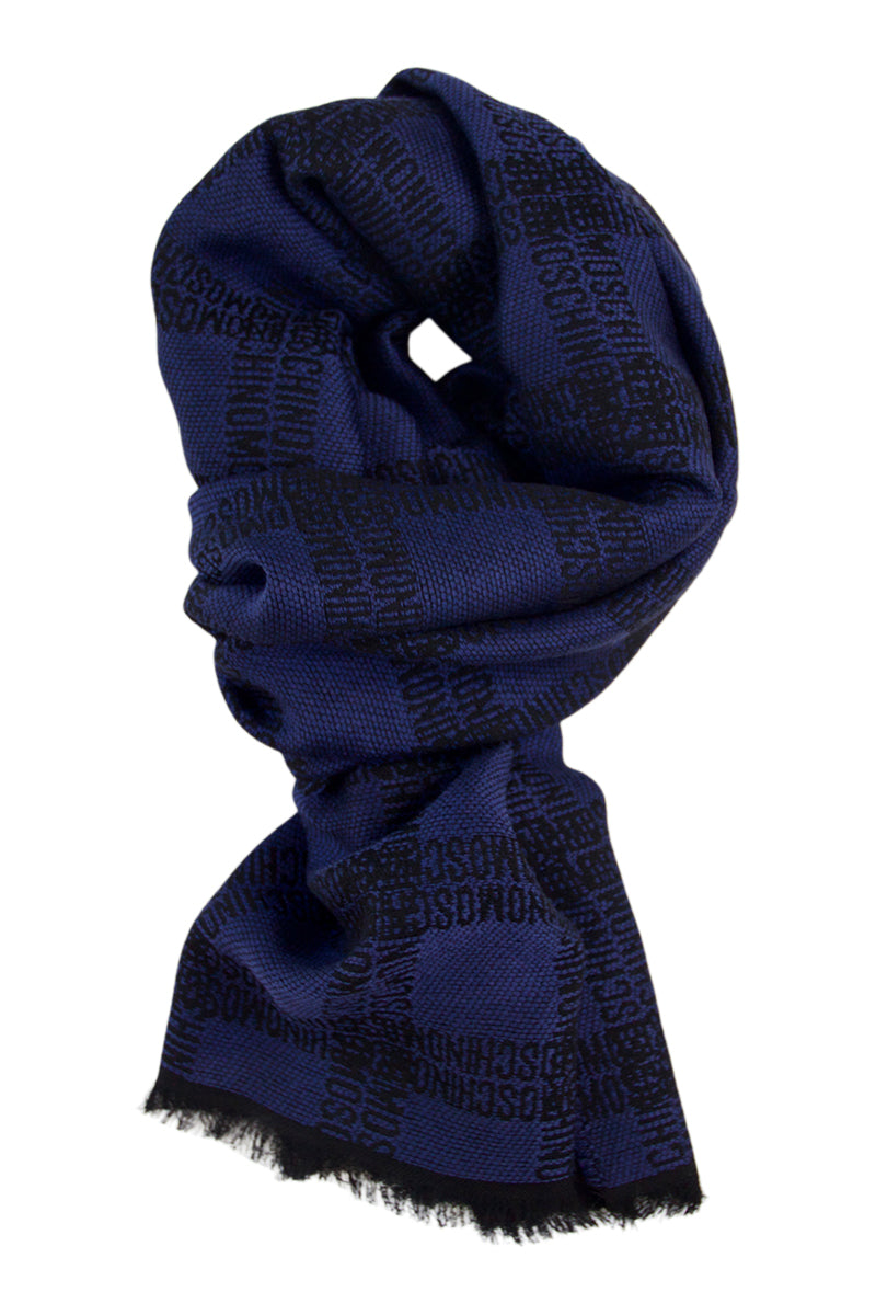 Navy blue merino wool scarf by Moschino
