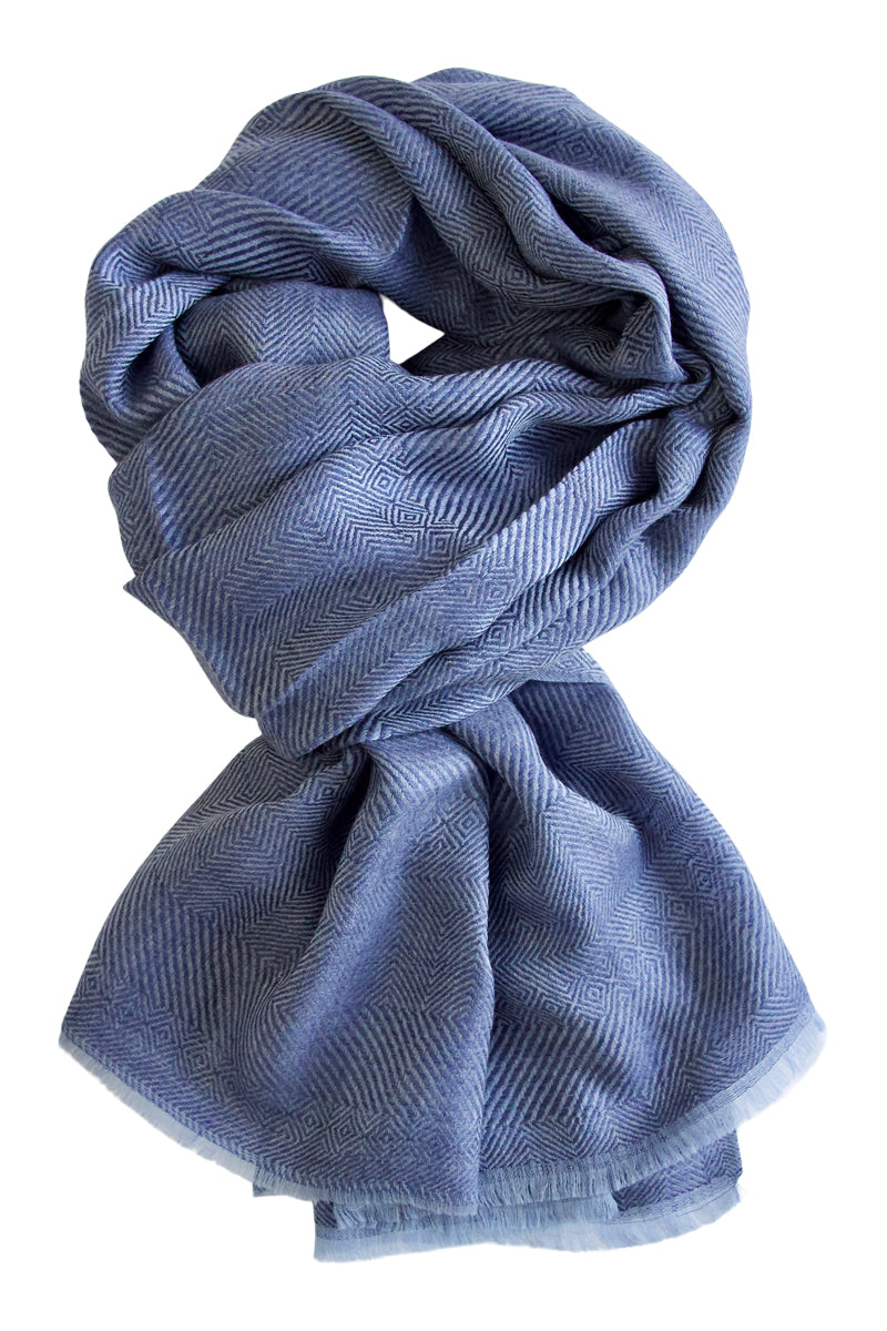 Cashmere scarf in beautiful weave 100% kashmir - blue