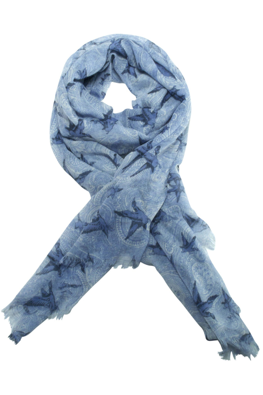 Paisley scarf from Besos with bird motif in grey / blue