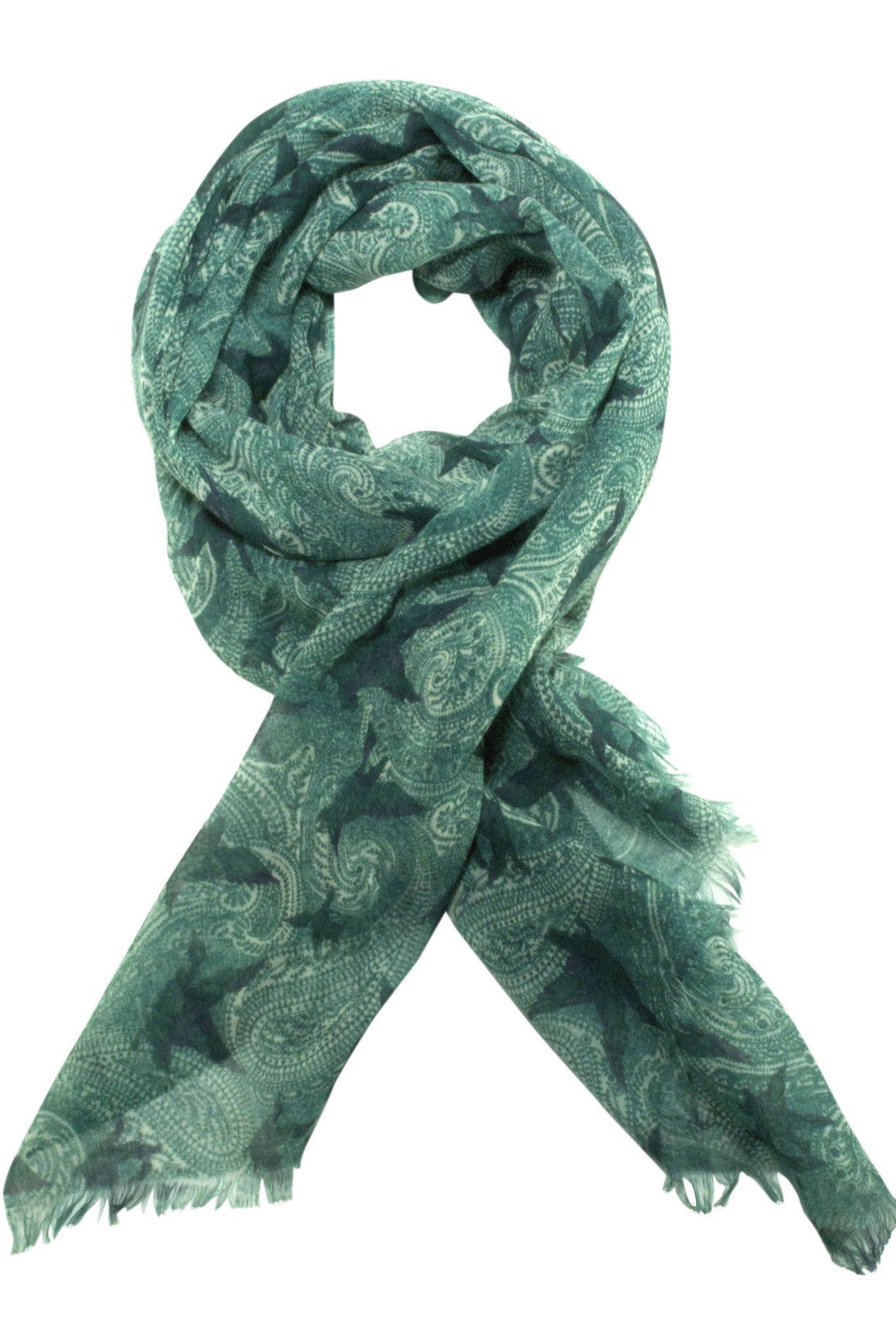 Paisley scarf from Besos with bird motif in grey / green